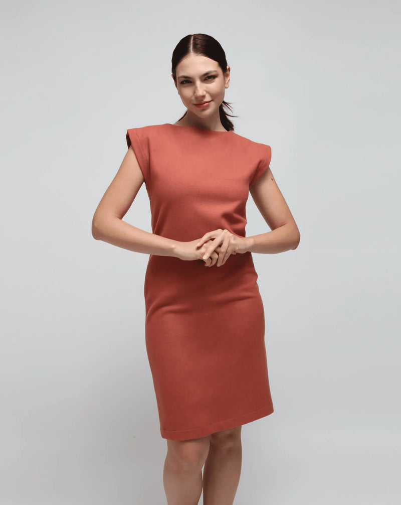 Entdecke The Canvas Dress: ein klassisches Etui-Kleid, neu gedacht für das Leben von heute. In seinem markanten Ziegelrosa verbindet es klare Linien mit Eleganz und Komfort – perfekt für Herbst und Winter.