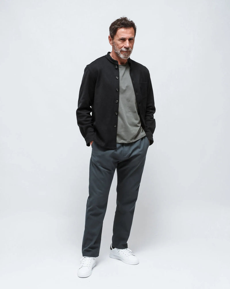 This Navy Blue Korean collar shirt in Punto Milano (Milano stitch) is a super versatile shirt-jacket with classic cuff, and applied pocket, you can bring with you everywhere. It’s the classic layer that you can put on top of another shirt or t-shirt. It is made in a beautiful blue Punto Milano fabric that very soft and cool enough for a summer evening and warm enough if it gets a bit chilly. This is the shirt you will put in your bag wherever you go because it will always come in handy. Like everything else from H&L it is a limited edition shirt.