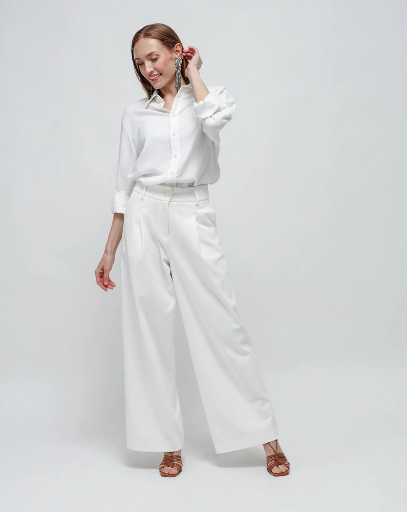 Punto Milano is known for its structure and softness: it holds its shape beautifully, moves with you, and instantly elevates any outfit. The crisp white tone makes these pants perfect for day or night, for work meetings or fun plans.