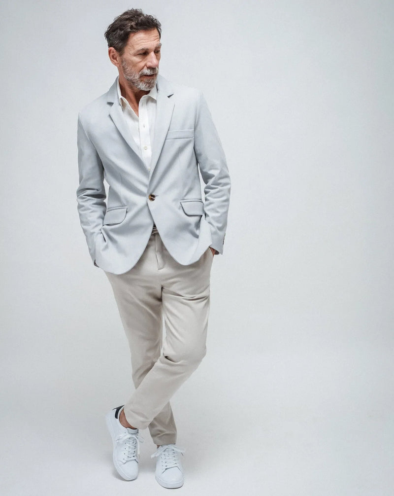 The sky blue one-button single-breasted jacket gabardine is a revisited classic that you will love. This jacket is slim on the body and had slanted side pockets creating a unique piece that will be in your closet for a long time. The fabric is a sky blue cotton gabardine which will keep you comfortable and cool during the warmer season. You can wear it on top of anything you like from jeans to an elegant pair of pants as a spezzato. Bring it with you on your summer travels or just wear it to the office for an elegant yet confident look. Like everything else in H&L it is a limited edition jacket. Enjoy it...