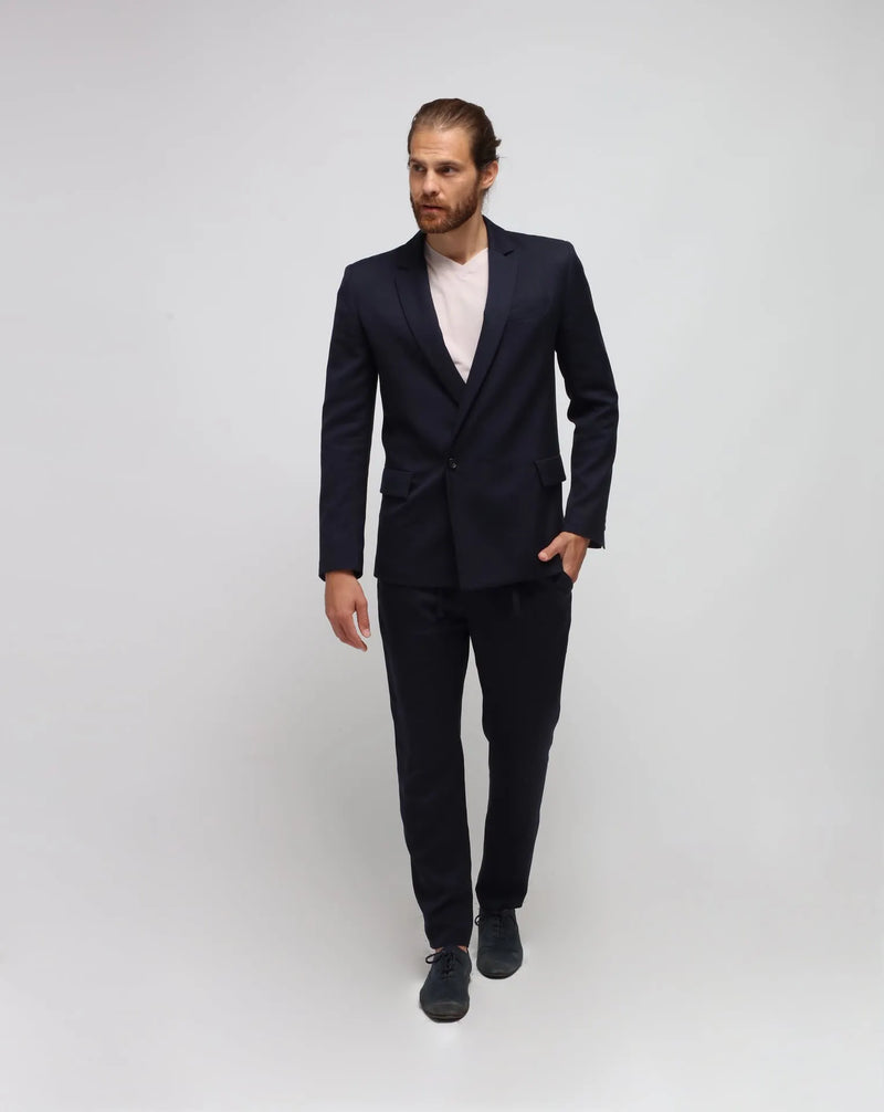 Questa giacca doppiopetto con un bottone è un nuovo classico moderno. Combinando il formale con il casual, crea una giacca unica nel suo genere. Il bottone singolo snellisce il classico doppiopetto, mentre il semplice rever mantiene il look casual ma con eleganza. Il tessuto blu è 50% cotone e 50% cupro, il che lo rende incredibilmente morbido e confortevole per l'autunno e l'inverno. Abbinalo ai pantaloni da viaggio per un look che ti accompagnerà dall'ufficio a una cena o a un lungo volo, il suo comfort ti accompagnerà. Come tutti i prodotti H&L, è una giacca in edizione limitata, con solo 4 pezzi realizzabili con questo tessuto. Siamo certi che la adorerai...